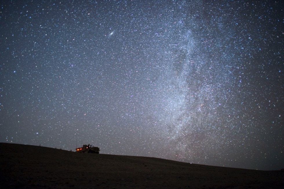 The Milky Way towers over U.S. Marines near their compound in Afghanistan. Photo by Dmitry Kostyukov/AFP/Getty Images.