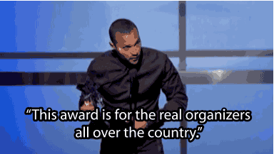 After quickly thanking his parents and his wife, he gave a shoutout to the people he called "the real organizers": activists, civil rights attorneys, teachers, parents, and everyone around the country fighting for equal rights.