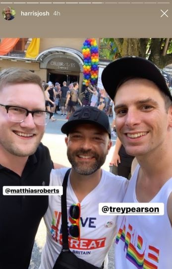 Harris drove the point home by posting photos of himself marching at Vancouver Pride. In one of the photos, he posed with gay singer Trey Pearson and the host of the “Queerology” podcast, Matthias Roberts. Both photos have since been deleted.