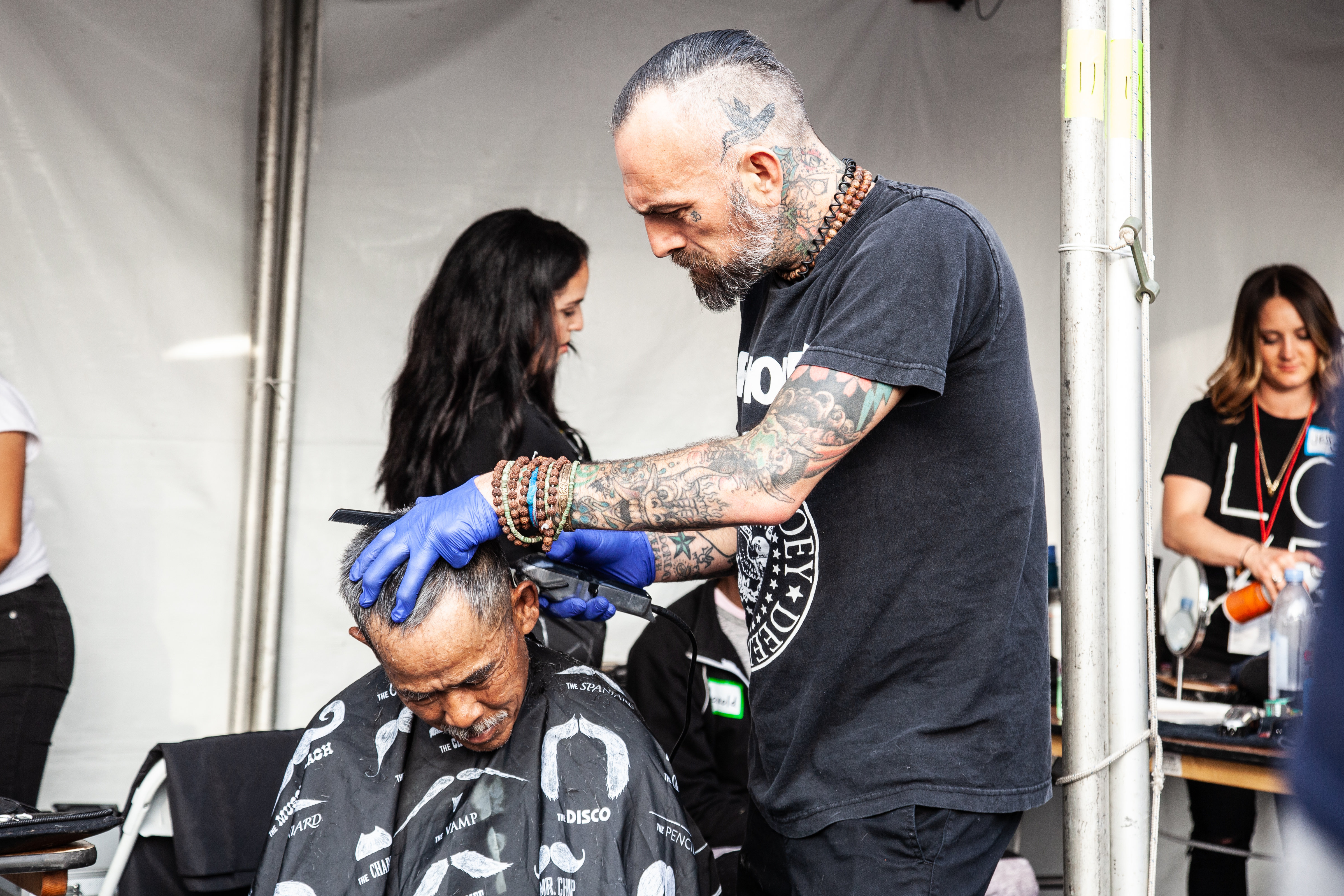 Now every year at the end of January, Wayfarer blocks of 20,000 square feet of Skid Row in Los Angeles for a day to put on the Skid Row Carnival of Love. They invite the whole neighborhood as honored guests, literally roll out the red carpet for them, and bring in every kind of service someone experiencing homeless might need, including career services, housing services, domestic violence services, dental and medical exams, an eye clinic, haircuts, massages, and more.