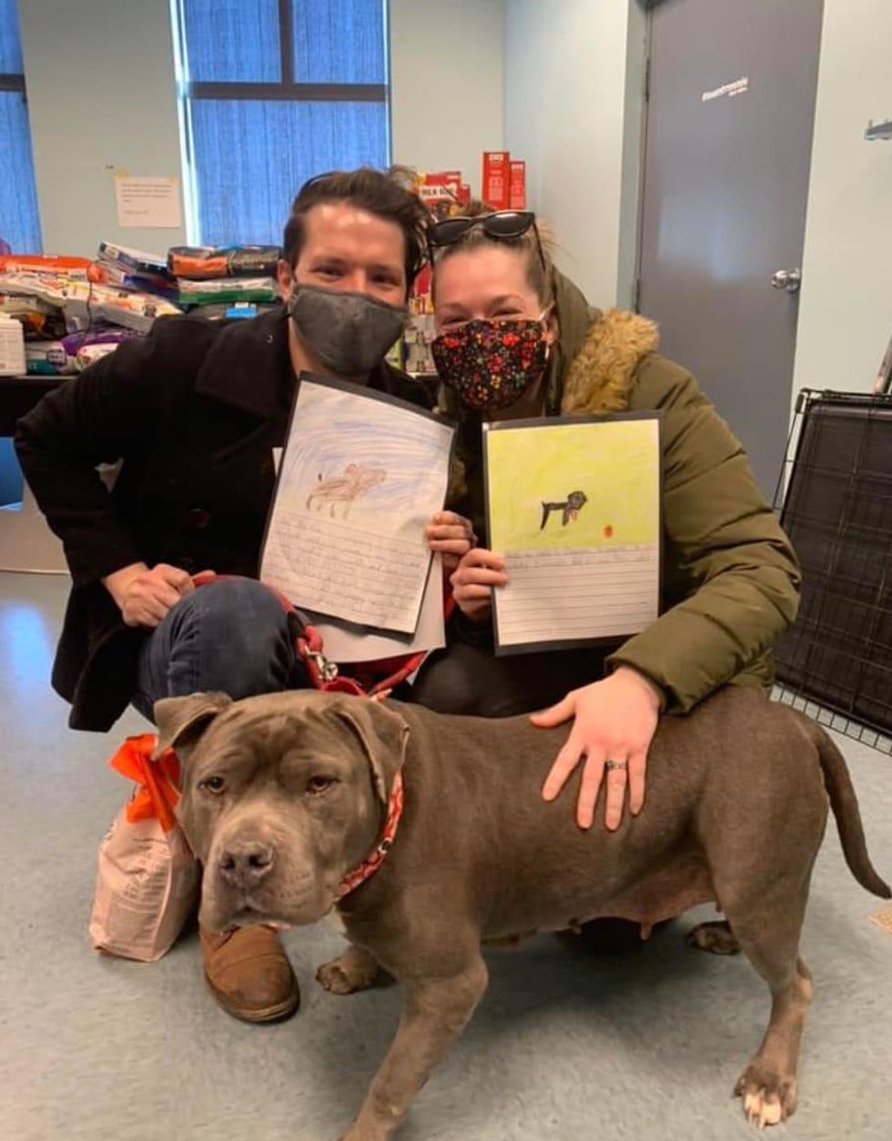 There were hand-drawn pictures and colorful notes attached to the dog kennels. On the kennel of a 5-year-old American Staffordshire terrier named Duquesa, the note read “I’m cute and short haired. I can cuddle and bark. Please adopt me.” The note was written in a child’s handwriting. There was another note on Duquesa’s kennel written in Spanish that read “Yo necesito to be adopted. Yo necesito food and agua. Please adopt me.” Marie said that after reading the letters and looking at the dog's sweet face “how could I not love her?”