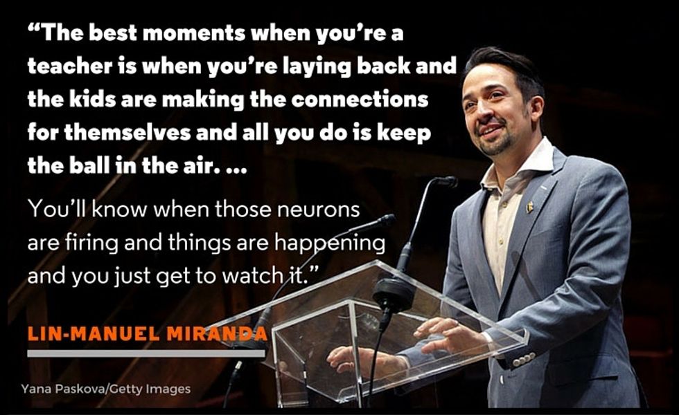 But this conversation was far more than some fun celebrity fluff. As a former high school teacher himself — and as someone who wrote an historical musical that teaches about the founding of our nation in a fresh, new, and delightfully anachronistic way — Miranda had some pretty insightful things to say to those often overworked and underappreciated shapers-of-minds.