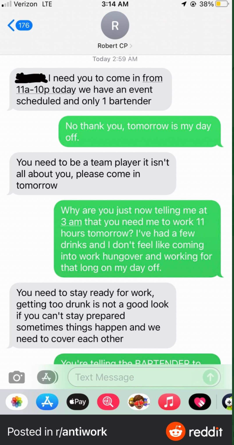 Like this bartender, who wasn't a "team player" for drinking on his night off.