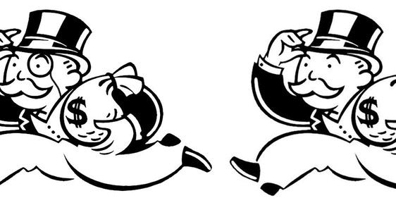 The Monopoly man definitely has a monocle. I can see it in my mind as clear as day. It is on his right eye as he is leaning forward. The thing is, he never donned such eye wear.