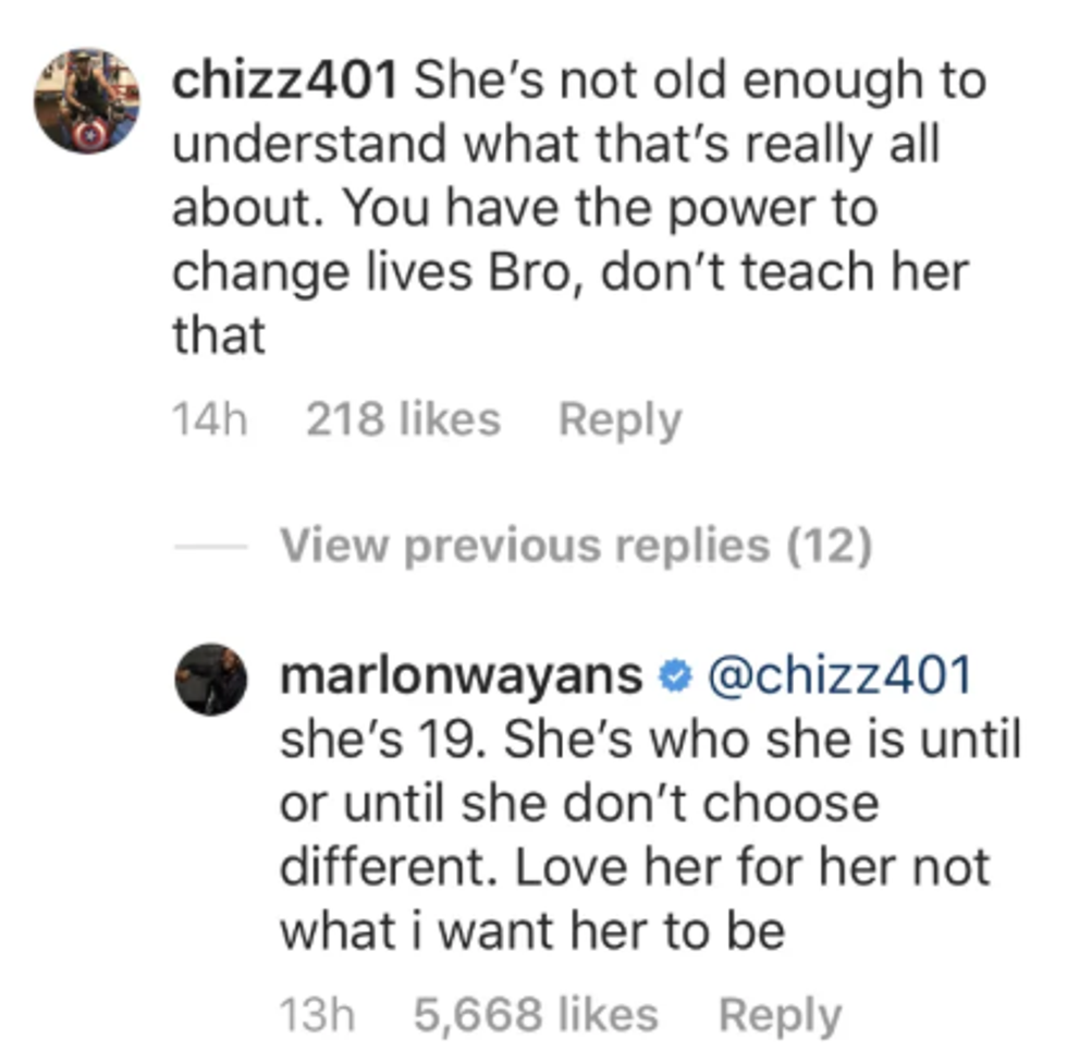 Marlon Wayans is not here for ignorant commenters coming onto his Instagram page to share their small world perspectives about his gay 19-year-old daughter Amai.