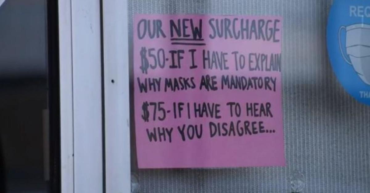While some of these incidents result in ugly confrontations, a business owner in North Texas is having a little fun with the anti-maskers that frequent his restaurant. He’s posted a sign notifying them, upfront, that they will be charged if they don’t comply with his mark rule.