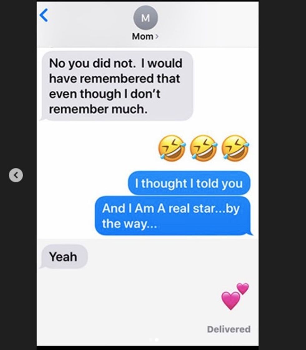 "I guess you were a hit at the Grammys," her mom texted with a smiley emoji.