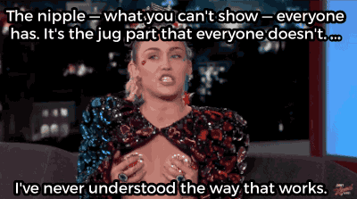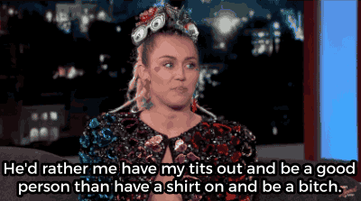 Miley goes on to make some awesome points about nudity and double standards (and make Jimmy even more uncomfortable).