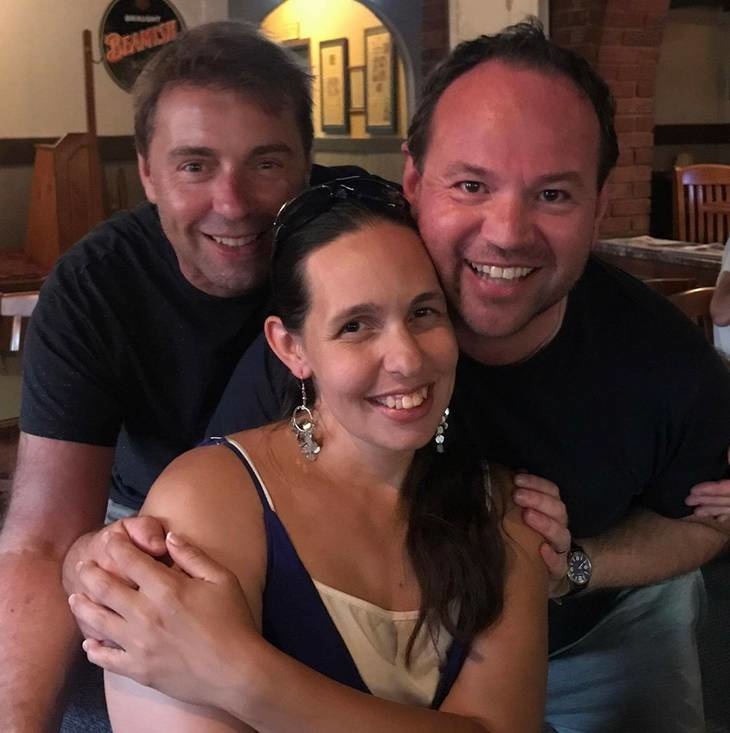 The twins recently celebrated their first birthday and the fathers flew Meg out to celebrate with them.