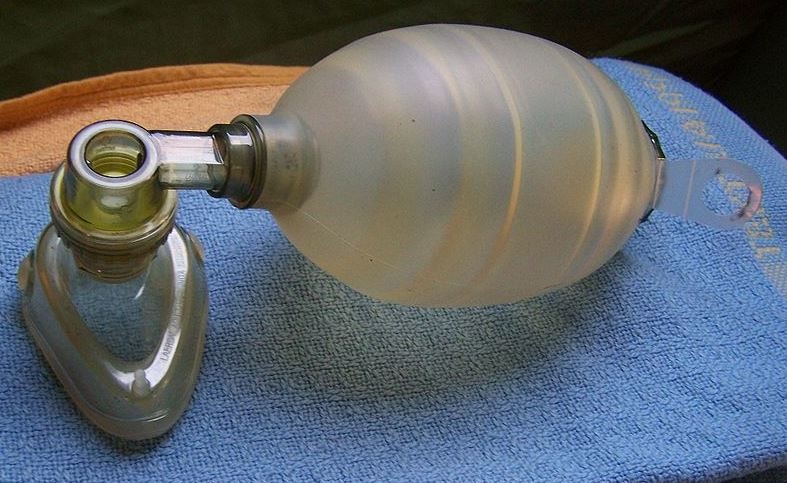 A bag-valve resuscitator or Ambu bag, is a self-inflating, hand-operated resuscitator used by first-responders to temporarily help people having difficulty breathing before they are able to hook them up to a ventilator.