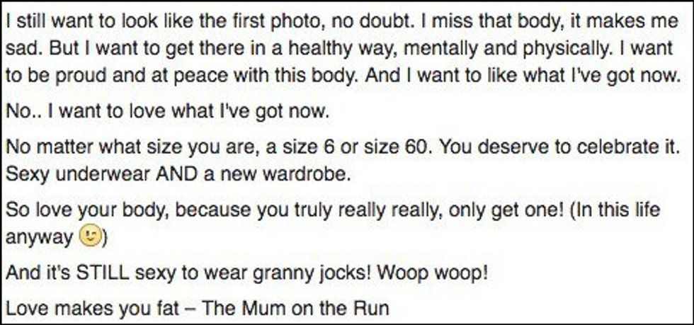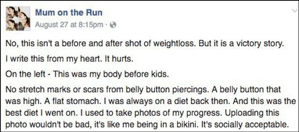 Laura Mazza, who goes by the name The Mum on the Run on social media and her blog, posted a powerful photo of how having three children changed how she values herself and her body.