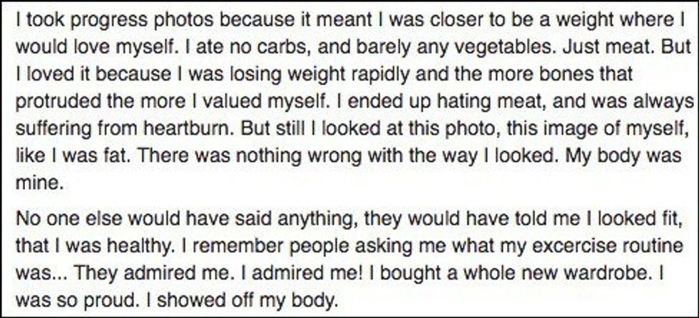 "I remember people asking me what my exercise routine was," she wrote about the picture of her younger self. "They admired me. I admired me! I bought a whole new wardrobe. I was so proud. I showed off my body."