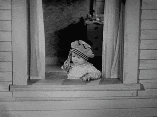 This baby will never throw enough money out the window to afford a solar panel. GIF from "The Little Rascals."