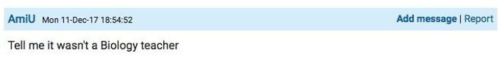 According to the post, the 15-year-old's teacher prevented her from using the bathroom because he legitimately thinks women can hold back period blood. Or he knows a bit about biology but still decided to put her in the position to be mortally embarrassed.