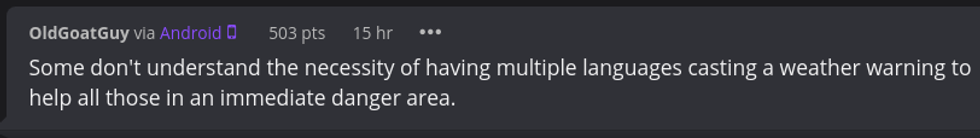 A.) He didn't consider the fact that many people living in or visiting America don't speak English and would still need to understand important news that could save their lives.