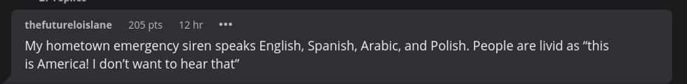In a two-part response, she carefully explains the reason the sole purpose of having a bilingual broadcast was to save lives. In the second part, she highlights Richard's inability to grasp that there is no language called "American" and suggests the become a bit more culturally aware.