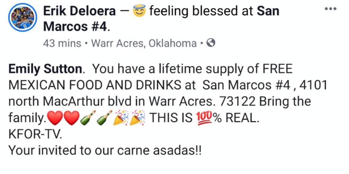 Her response quickly went viral, as everyone was loving the shellacking she gave Richard. This included restaurant and bar San Marcos No. 4, who loved her takedown of the discriminatory Facebook troll so much that they offered her free Mexican Food and margaritas for life.
