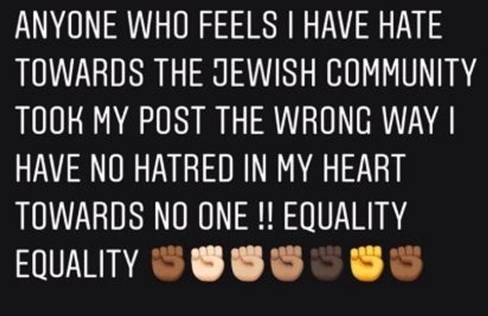"Hitler has caused terrible pain to Jewish people like the pain African-Americans have suffered," he added. "We should be together fighting anti-Semitism and racism. This was a mistake to post this and I truly apologize for posting it and sorry for any hurt I have caused."