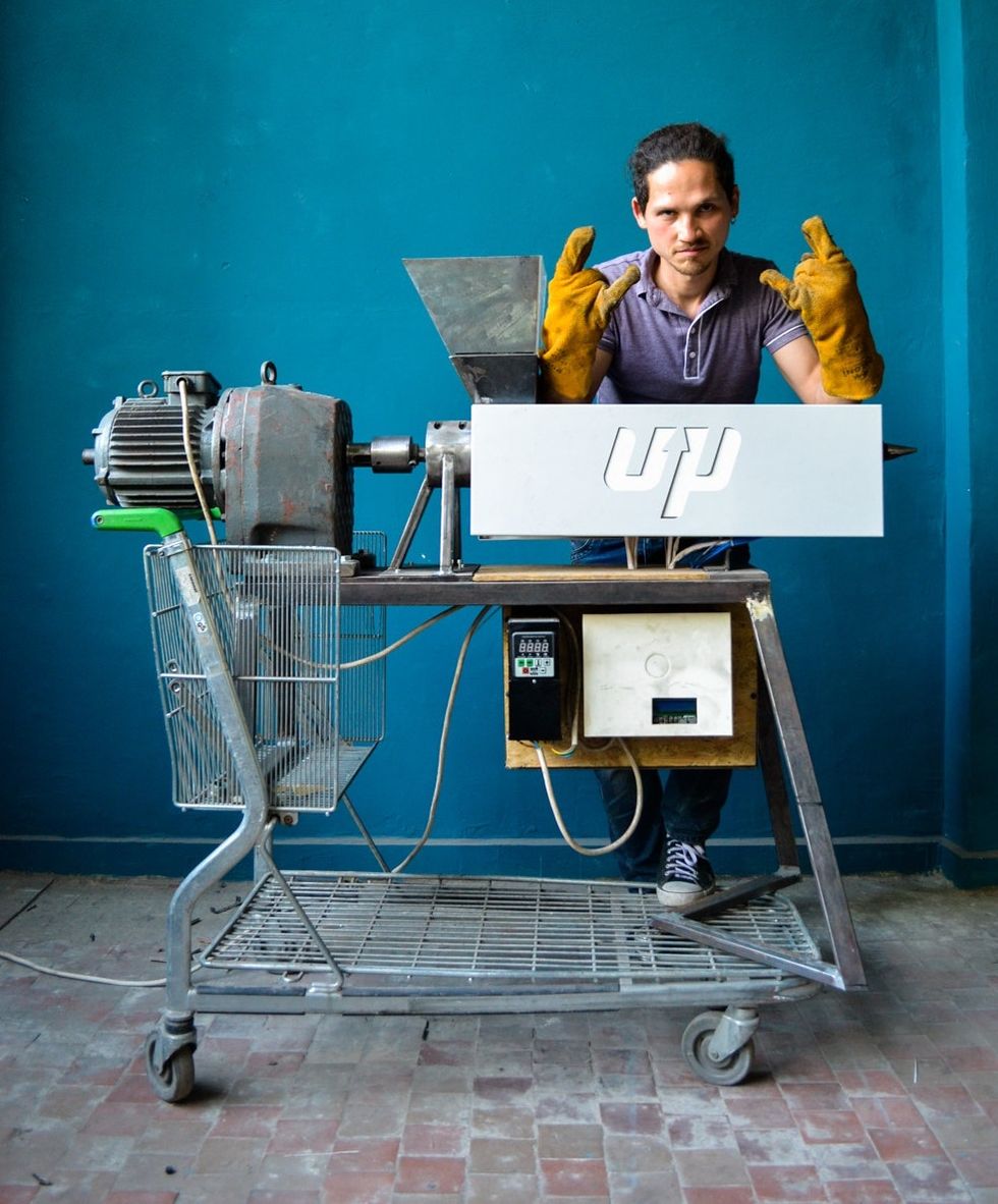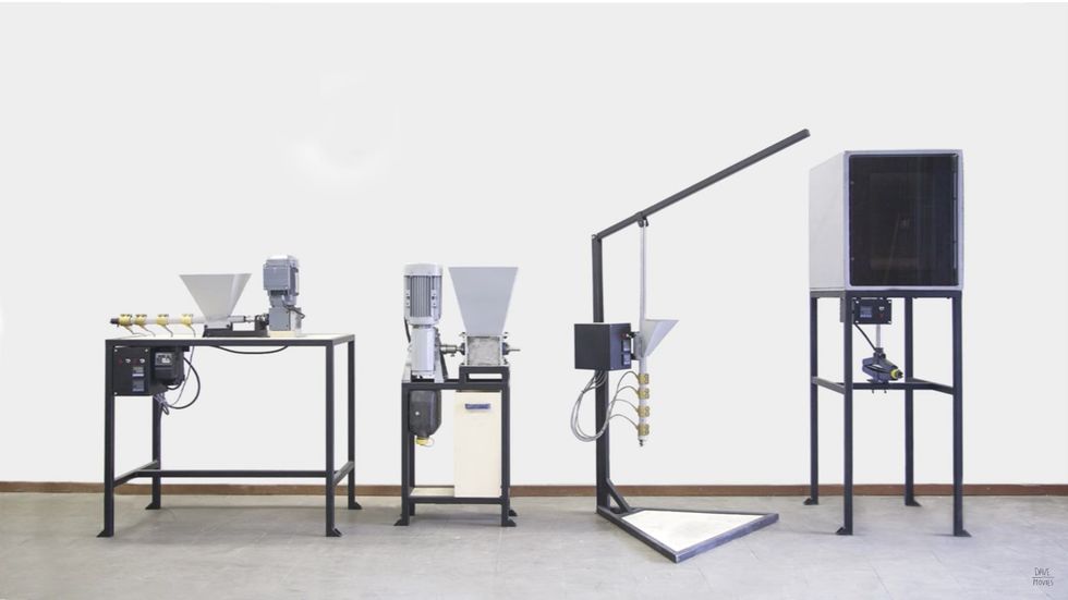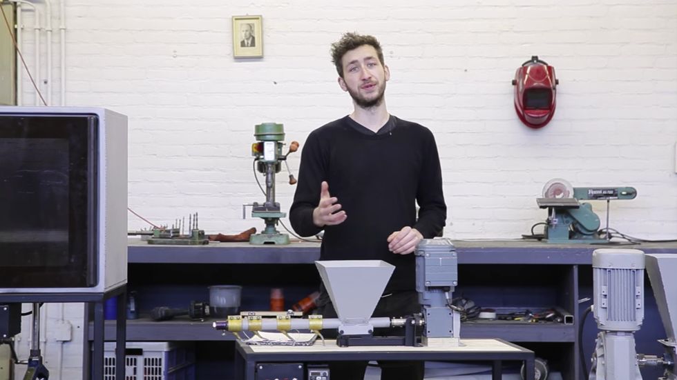 Hakkens explains further on his website: "The machinery is based on industry standards but designed to build yourself, easy to use and made to work with recycled plastic. You can bring your old plastic to a workshop like this, new products will be made and sold. Like a carpenter or a ceramist, it is now possible to produce plastic locally."