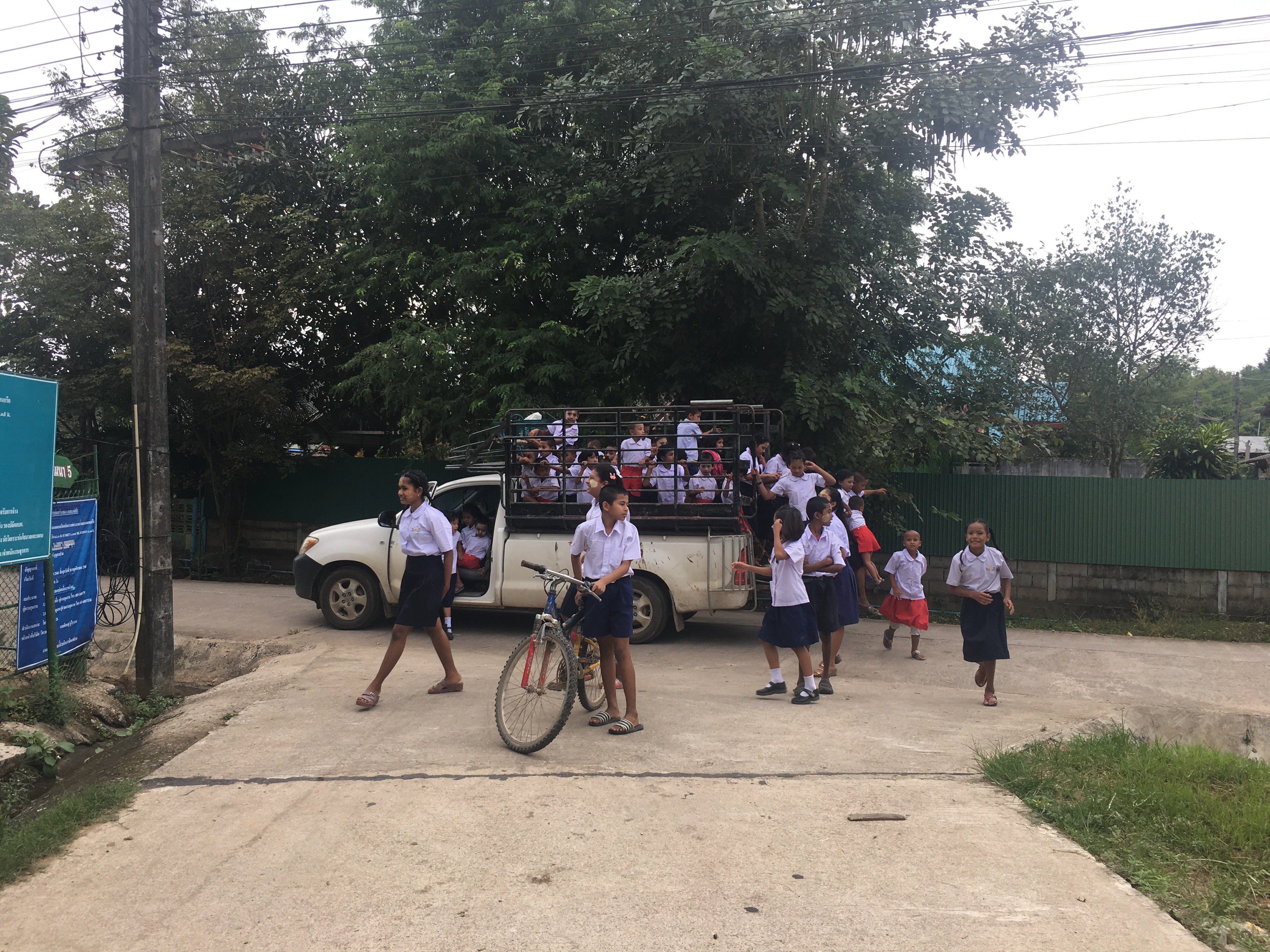 As we set off for one of the three Burmese schools we’ll be visiting this week, Pauline goes over what we’ll be doing and who we’ll be seeing. Mae Sot sits along the Thai side of the border between Thailand and Burma (also known as Myanmar) and is home to tens of thousands of Burmese people of varying statuses. Many are refugees who fled their homeland during several decades of civil war and unrest. Some belong to ethnic groups who are persecuted in Myanmar. Some are migrant workers who legally or illegally make their living on this side of the border, contributing to cheap labor in Thailand.