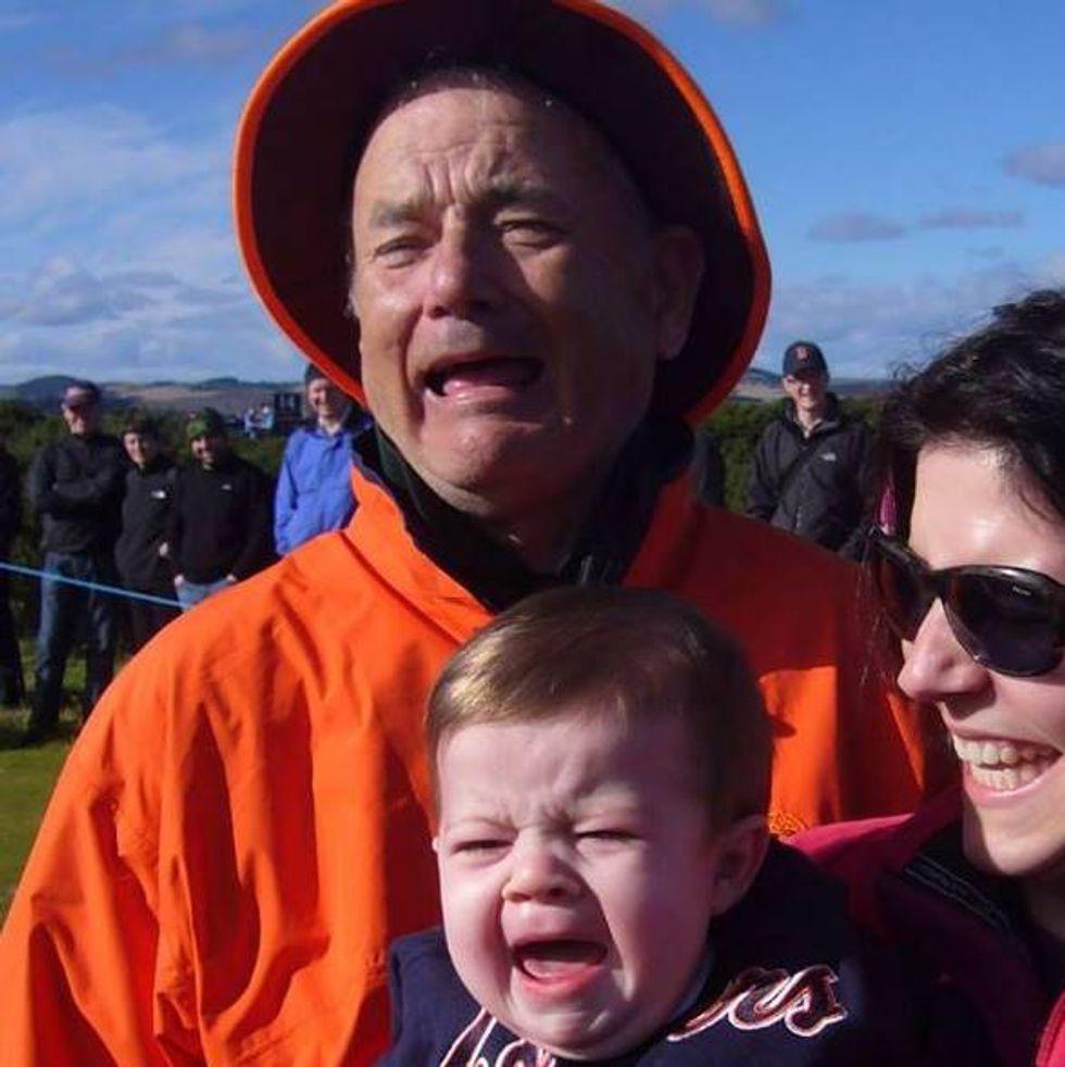The photo above is of Bill Murray and Laura DiMichele-Ross holding her crying son, Alexander, at the Alfred Dunhill Links golf competition at St. Andrews in October 2012. DiMichele-Ross posted the photo to a popular Facebook blog “Reasons My Son Is Crying” in May 2013. The photo resurfaced in October 2016 on the Today Show website, reigniting the controversy all over again.