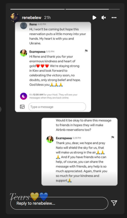 The Quentin Quarantino Instagram account, which has been used for huge crowdfunding efforts, shared the idea and the responses some followers have gotten from Ukrainians when they’ve done this. It also shared some tips, such as booking dates that are coming up soon since payments only go through to the host once the booking date arrives.