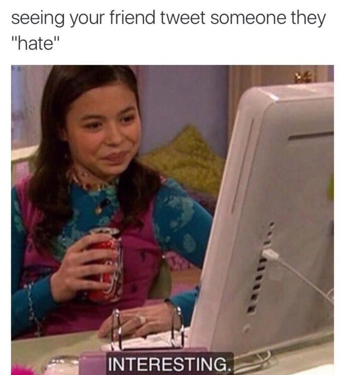 The meme is taken from a 2006 episode, “Mindy Loves Josh,” where Megan Parker (Miranda Cosgrove) looks up the symptoms of a skin disease on a computer, at one point taking a sip from a soft drink can and commenting “Interesting.”