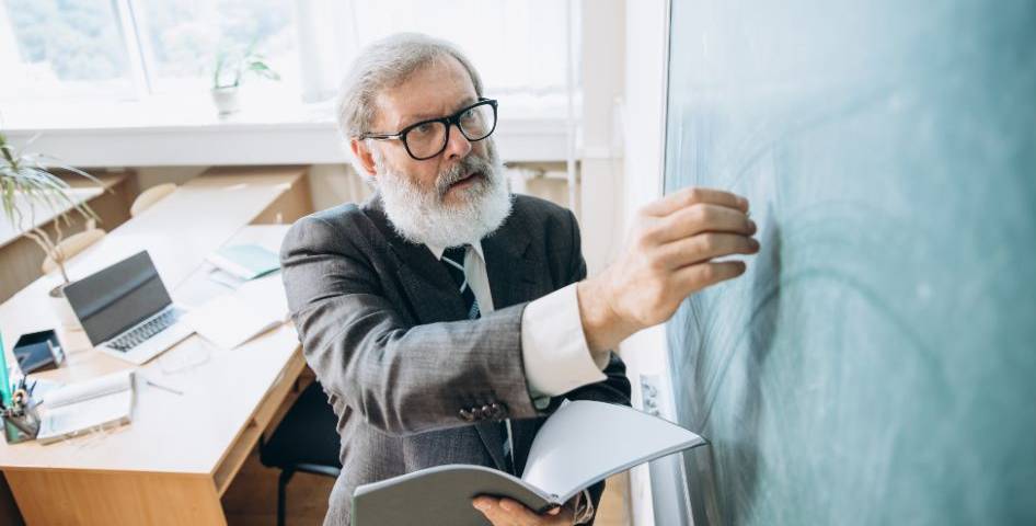 A teacher writing on the blackboard. Photo credit: Canva