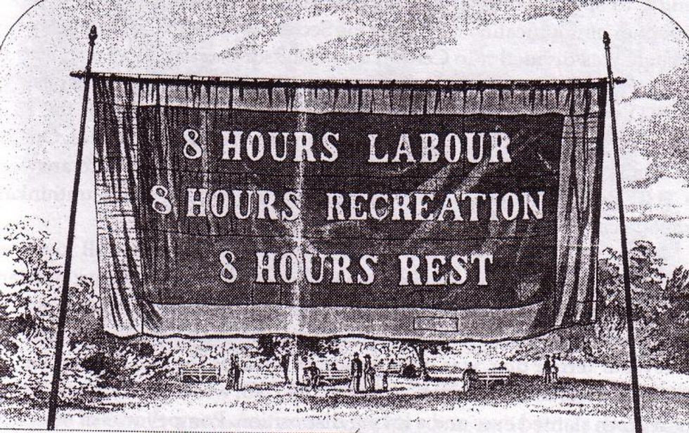 In the late 1800s, there was a movement in the United States to shorten the average workday and a popular slogan suggested that the correct way to spend a day was "8 hours for work, 8 hours for rest, 8 hours for what you will."