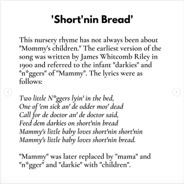 For example, there are many common phrases we use that are racist, which many of us having no idea. And now The Conscious Kid on Instagram has shared how a collection of standard nursery rhymes most of us recited or sang as children that also come from racist origins. Some of them come from the blackface minstrelsy era, when white people dressed in blackface and sang songs portraying black people as uneducated caricatures. Others started as blatantly racist rhymes, then changed over time to be palatable to a more enlightened audience.