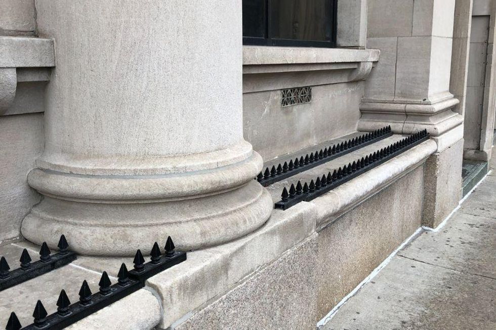 Some cities don't exactly embrace empathy and compassion when planning how to handle their homeless population. Several large cities in America, including New York and Philadelphia, have spent millions of dollars on what has been coined "hostile architecture." It's where they make park benches slanted or awkwardly divided to discourage people from sleeping there. Some places have even placed spikes and boulders under overpasses that are often used to escape the elements for people without other means of shelter.