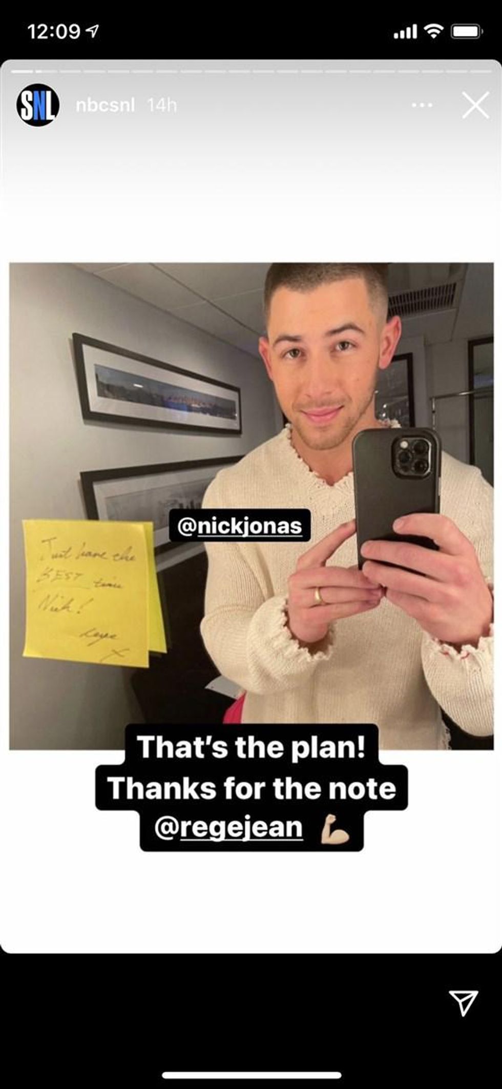 Now, no one knows if Jonas wrote an encouraging Post-it of encouragement for the next host, SNL mainstay Maya Rudolph. But her episode will air after a month-long break, on March 27.