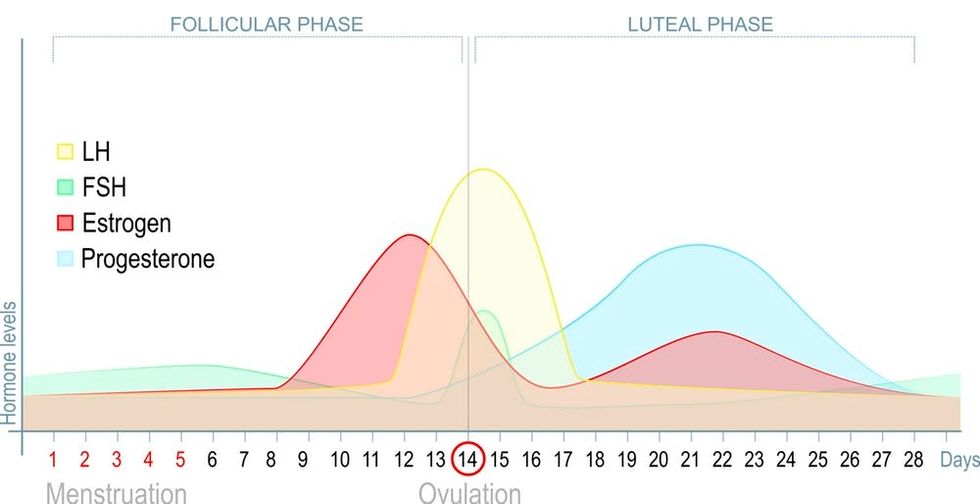 Other researchers suggest that these food cravings are regulated by hormones. Scientists have observed that women tend to eat more when estrogen levels are low and progesterone levels are high – as occurs during the luteal phase. The reverse pattern is seen in rats during the follicular phase, when estrogen levels are high and progesterone levels are low. The fact that progesterone-only forms of contraception like Depo Provera are associated with weight gain, likely due to increased appetite, supports this theory as well.
