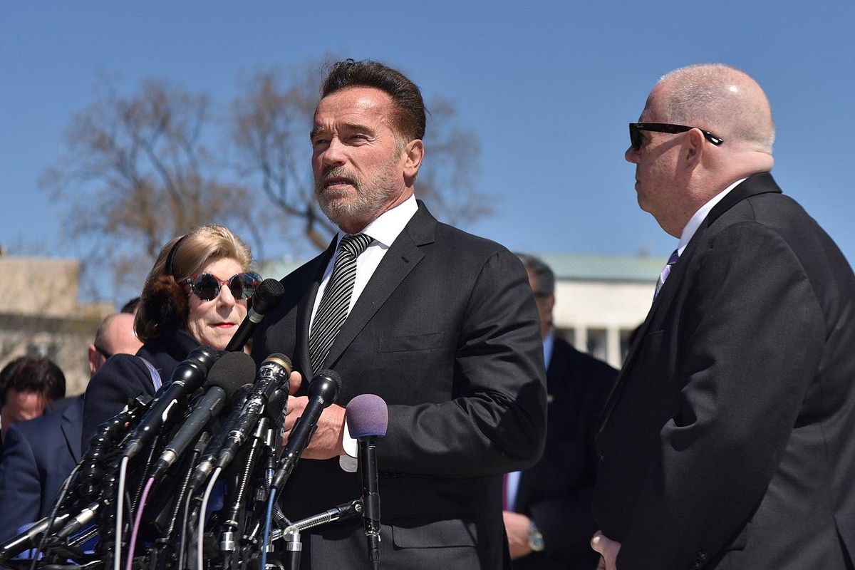 Governor Arnold Schwarzenegger talks to the press in front of the Supreme Court of the United States, 2019.