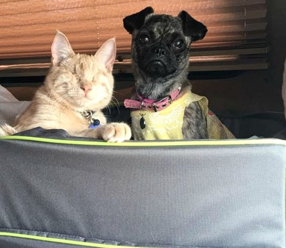 They took in a 10 week old kitten named Mowgli who'd lost his eyes to an infection, as well as a pot-bellied pig named Wanda and a Labrador named Martin, both of whom are also blind.