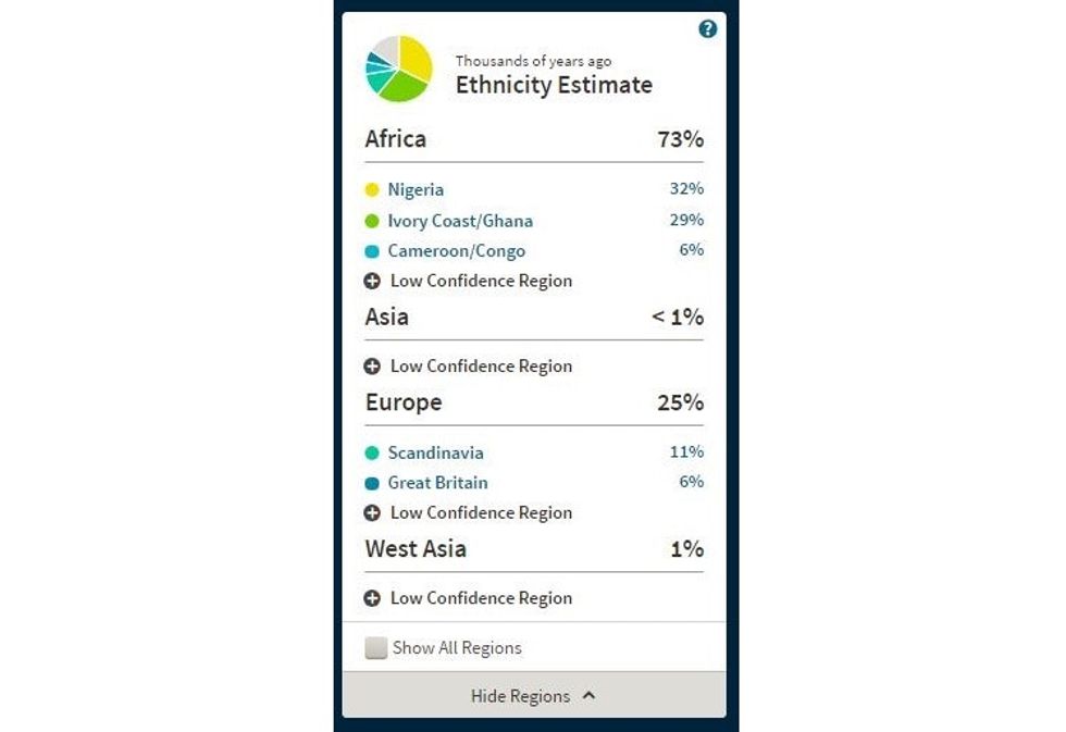 Once the initial shock of not having any Native American heritage died down a little, Watson was able to really process her results, which showed that 73% of her ancestors came from the continent of Africa and 25% came from Europe, mostly Scandinavian regions.