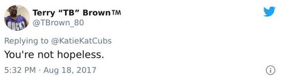 Terry Brown of Kentucky had recently started following Katie on Twitter because he thought she was "cute" and saw her tweet "as an opening." He boldly, and in the opinion of many, incorrectly, suggested that Twitter was a good place for Katie to meet single men.