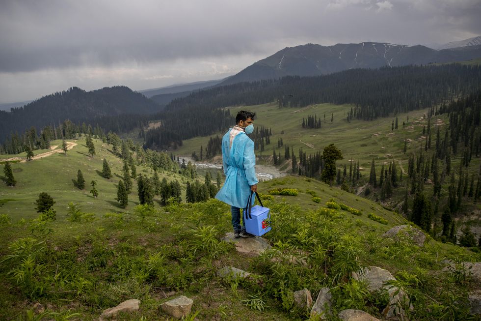With a cooler of COVID-19 vaccines in hand, Nazir Ahmed looks for shepherds and nomadic herders in the meadows of Tosamaidan, southwest of Srinagar in the Indian territory of Jammu and Kashmir. In the race to vaccinate against the SARS-CoV-2 virus, healthcare workers have gone to extreme lengths to reach remote communities.