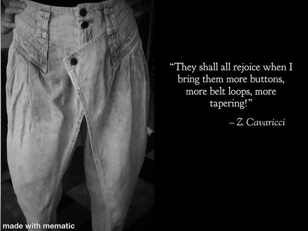 - In middle school I bought a pair of ZCavaricci pants with wings. (This was a few years before the grunge revolution and it was still Hammertime all the time.)