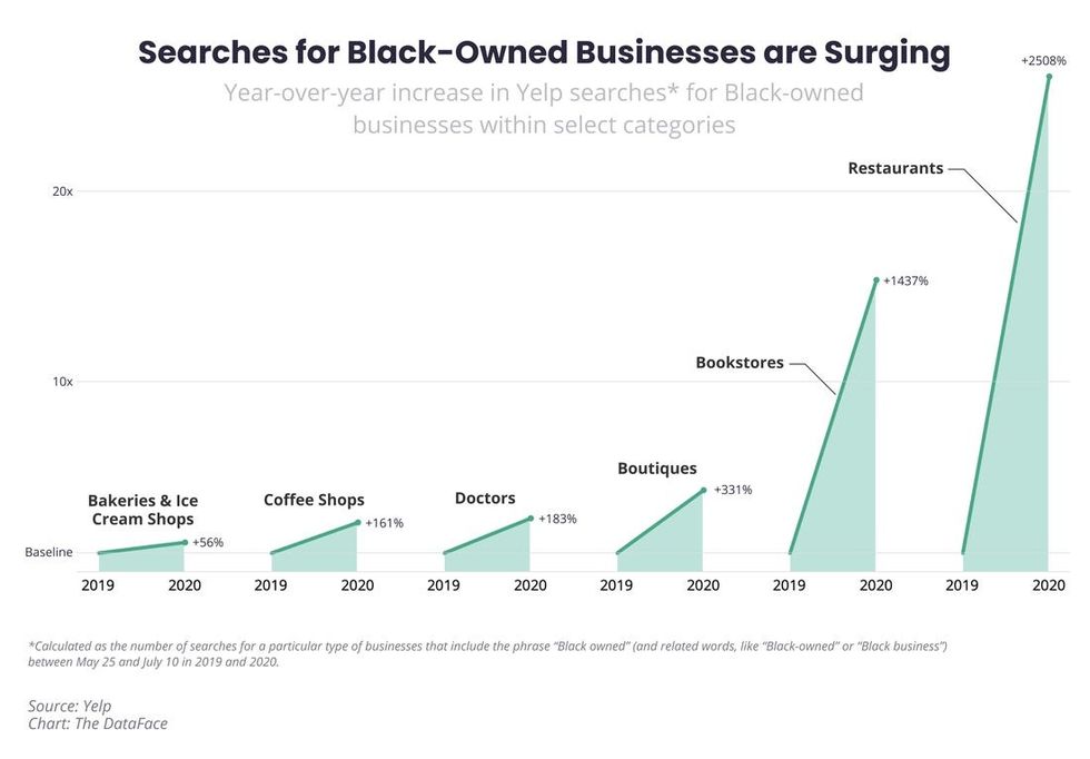 During that period there were over 2.5 million searches for Black-owned business, compared to just 35,000 during a similar period in 2019.