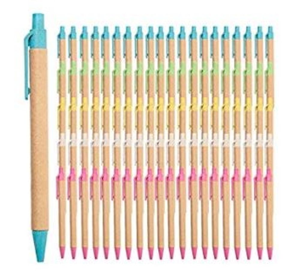 Who said pens have to be made from plastic? These eco-friendly retractable ballpoint pens are made of sturdy biodegradable cardboard, recycled ABS plastic, and wheat stalk. They write as smooth and comfortably as any ordinary pen, in a smarter, Earth-conscious design and are great for your office, home, or school.