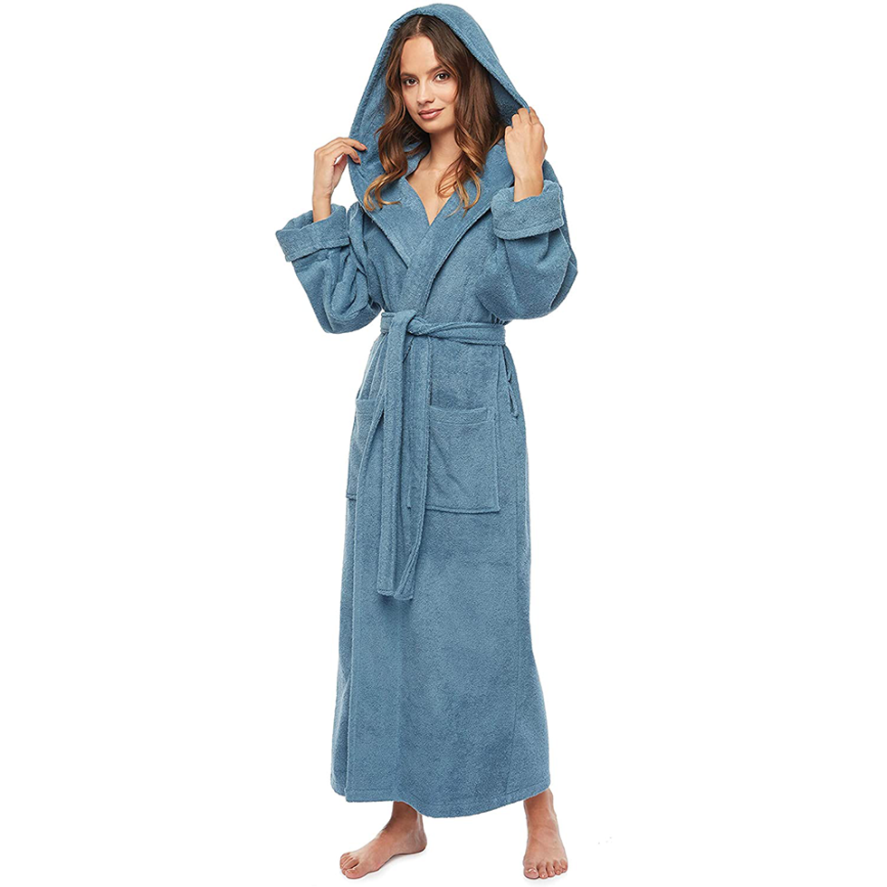 Arus Women's GOTS Certified Organic Cotton Hooded Full Length Turkish Bathrobe