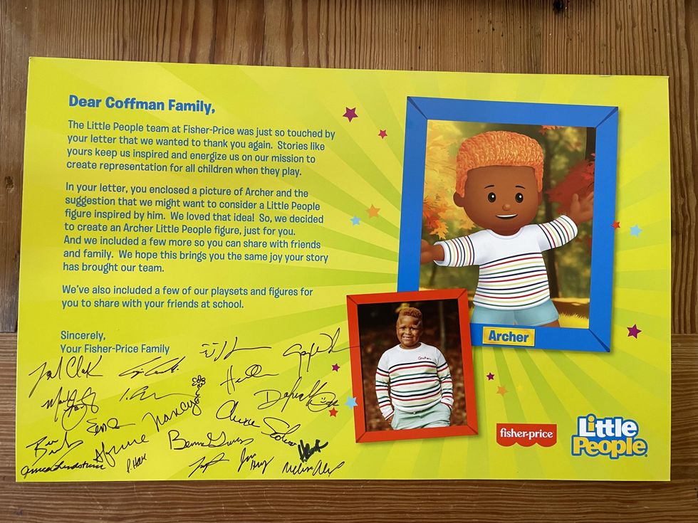 But after seeing how inclusive Fisher-Price Little People are, Coffman decided to write the company a thank you letter. She explained the family's predicament and her love for how diverse the Little People collection was.