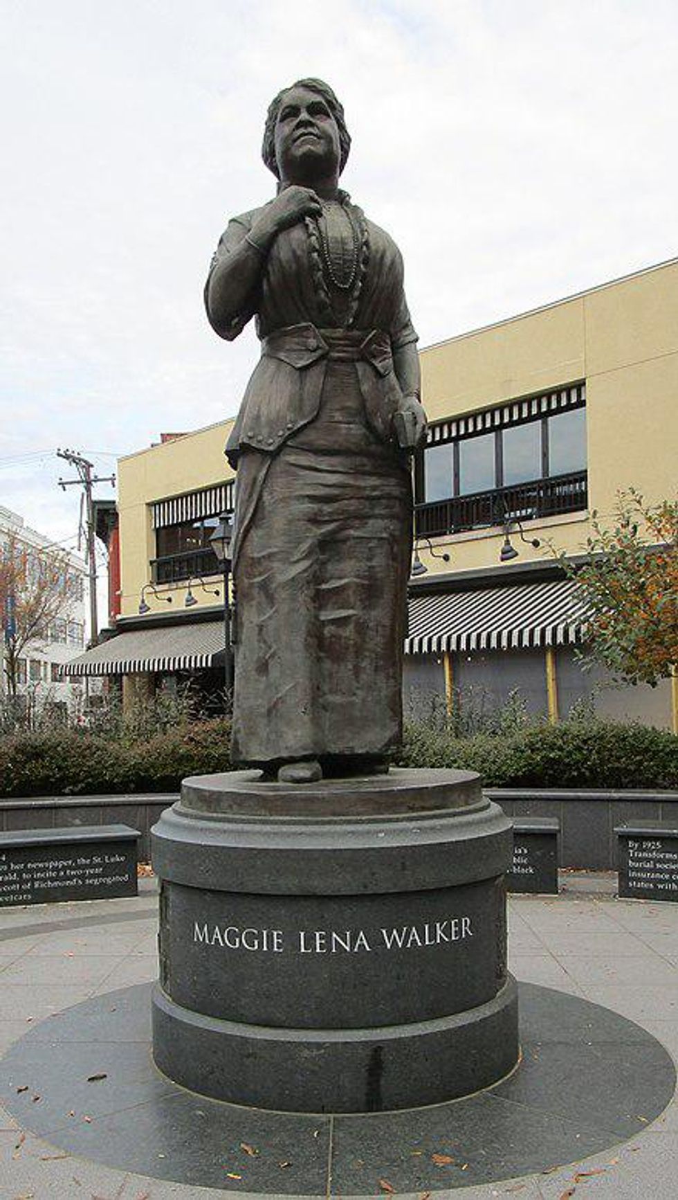 A bronze statue of Maggie Walker currently honors her legacy in downtown Richmond near the city's own Black Wall Street.