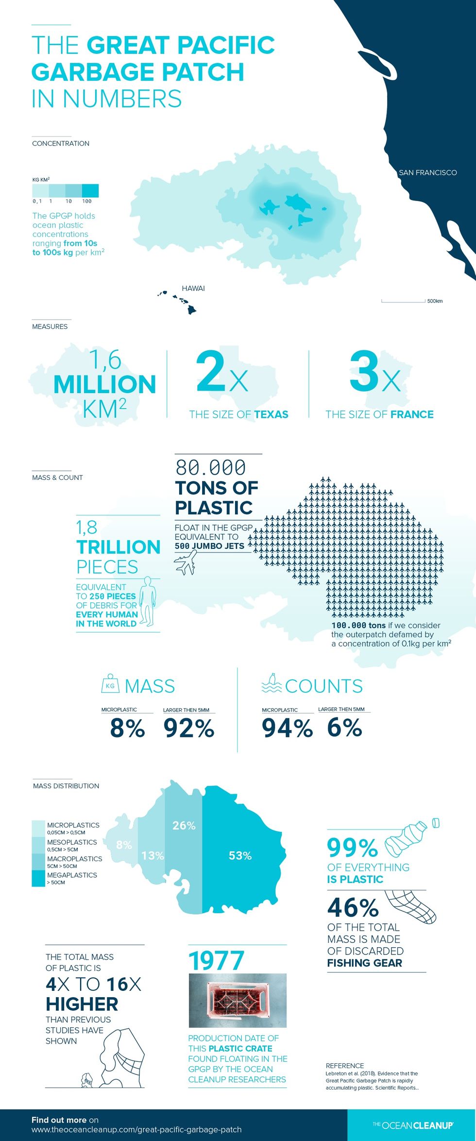 Slat and his team have found that the Great Pacific Garbage Patch contains approximately 1.8 trillion pieces of plastic. That's 241 pieces for every human on Earth. Some of it breaks down into smaller pieces, but it always remains, threatening marine life, birds, and ultimately humans as we consume seafood.