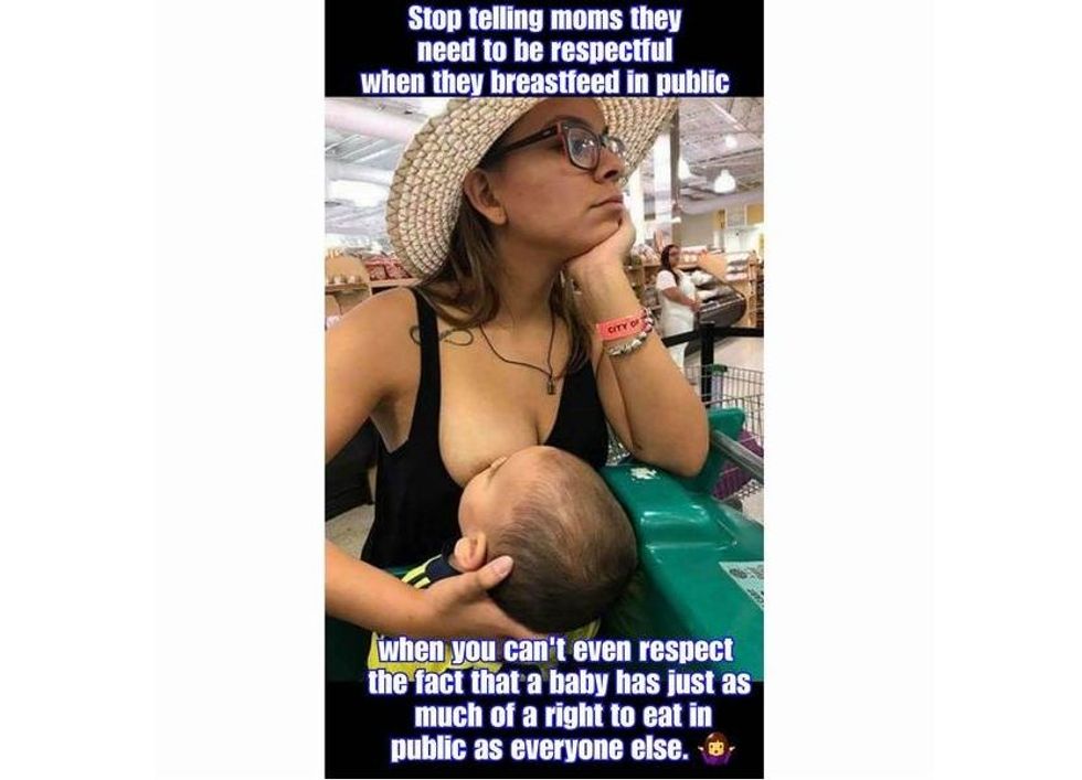 "Stop telling moms they need to be respectful when they breastfeed in public," the meme says. "When you can't even respect the fact that a baby has just as much of a right to eat in public as everyone else."