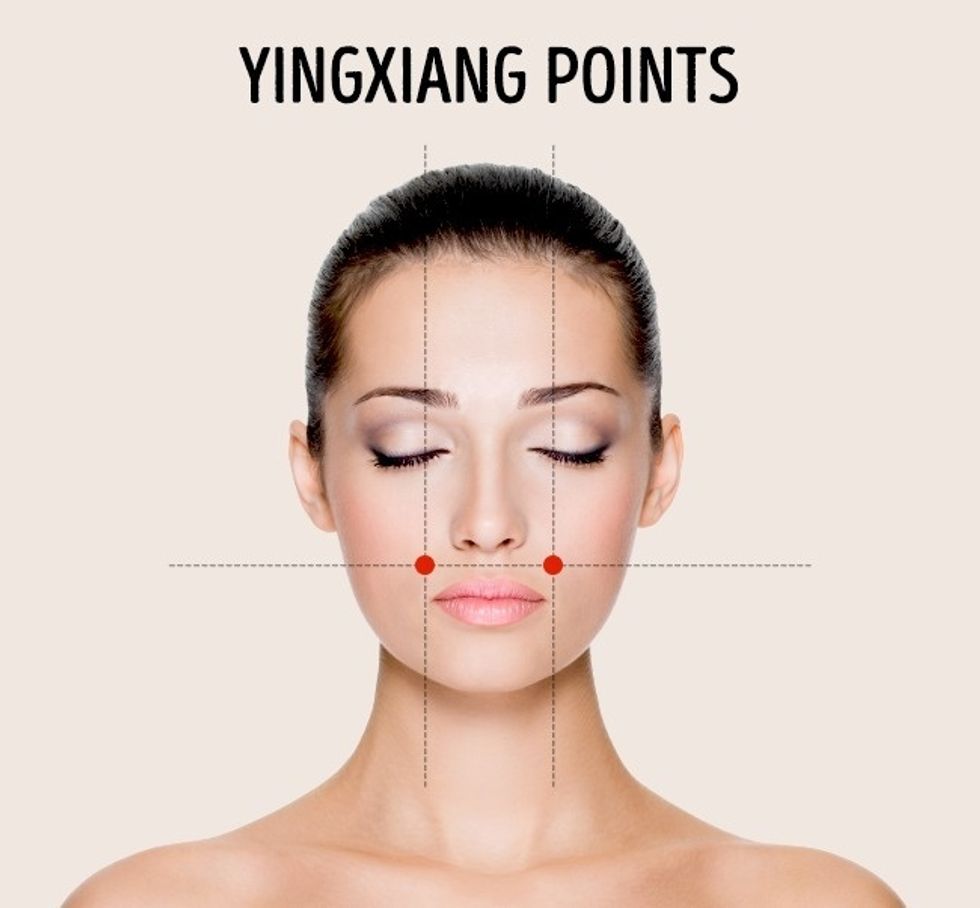 The Yingxiang points (on either side of the nostril, in line with the eyes)