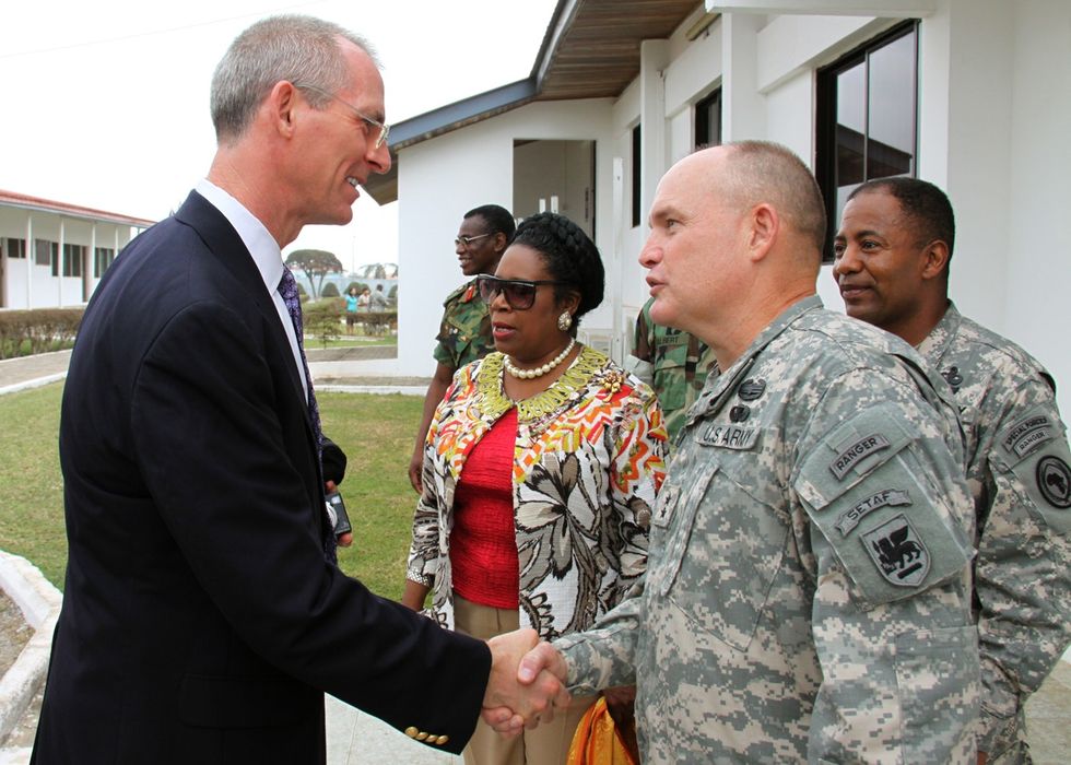 Inglis, left, meets with troops in Ghana in 2010. Photo via