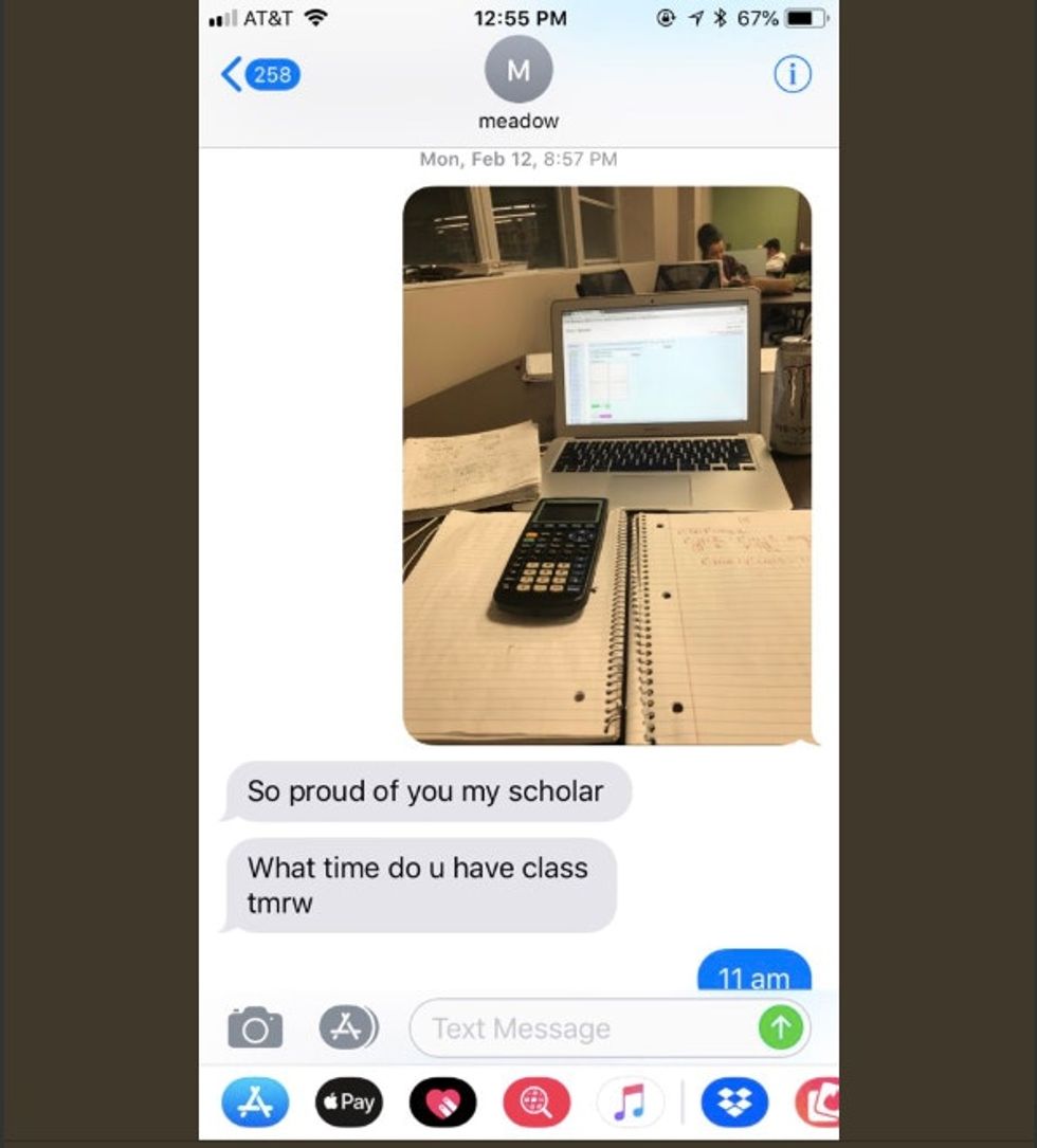 Heading into finals week, Hunter shared some of those text message on his Twitter account, writing: