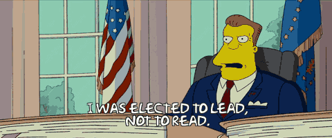 Arnold Schwarzenegger shows up in "The Simpsons Movie" as a president who was "elected to lead, not to read" — which might sound a little familiar.